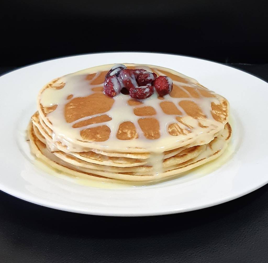 En España se les suele llamar tortitas, son esponjosas, más gruesa que los crepes, y la circunferencia es más pequeña. Se acompañan normalmente de nata y jarabe o sirope (fresa, chocolate, caramelo, etc.). Se suelen tomar de postre, como desayuno, merienda o como un simple antojo. Si ya te a dado el antojo aquí va la receta.