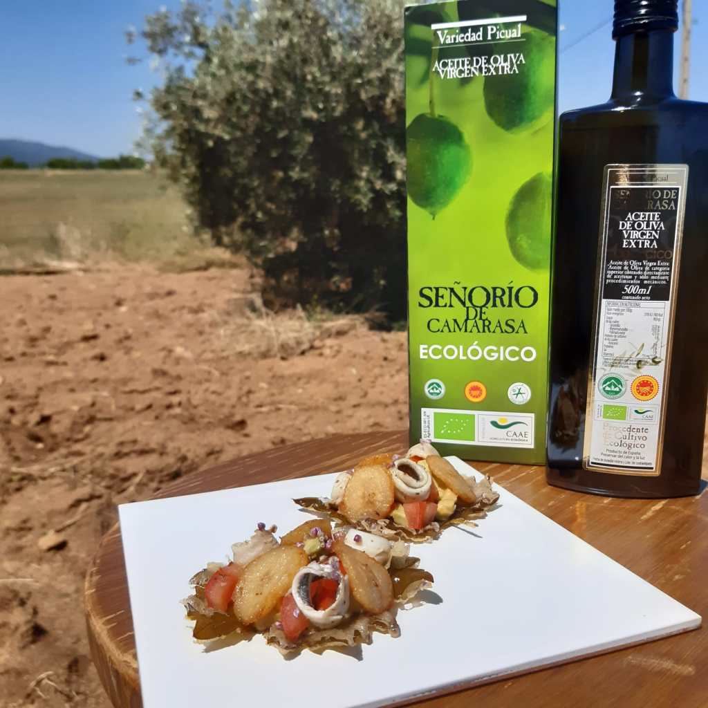 Hoy he podido disfrutar cocinando con un maravilloso aceite de oliva virgen extra con Denominanción de Origen de la Sierra Mágina, en concreto un aceite de variedad Picual del Señorio de Camarasa.