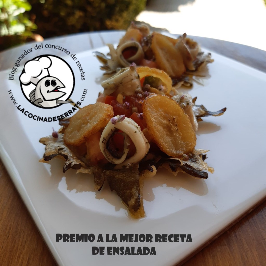 Tengo el placer de anunciar que tanto yo como mi blog hemos sido premiados por LA COCINA DE SERRATS a la mejor receta de ensaladas. La receta ganadora es la Ensalada con hojas de parra en tempura que podéis ver en este mismo blog.