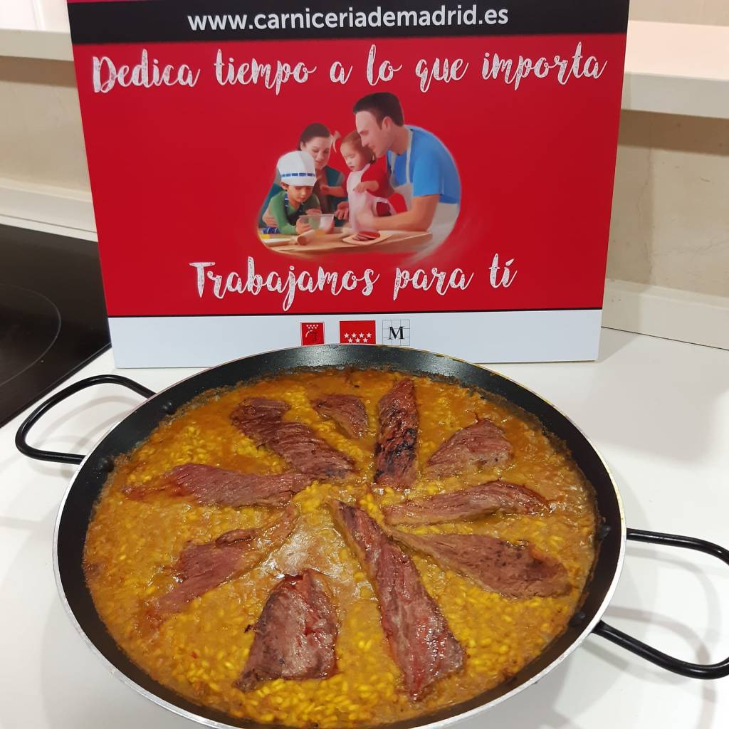 - Deja cocinar unos minutos, cuando veas que está consumiéndose parte del caldo, añade la carne y colócala por encima del arroz, con los minutos que le faltan al arroz y el calor residual se terminara de cocinar.