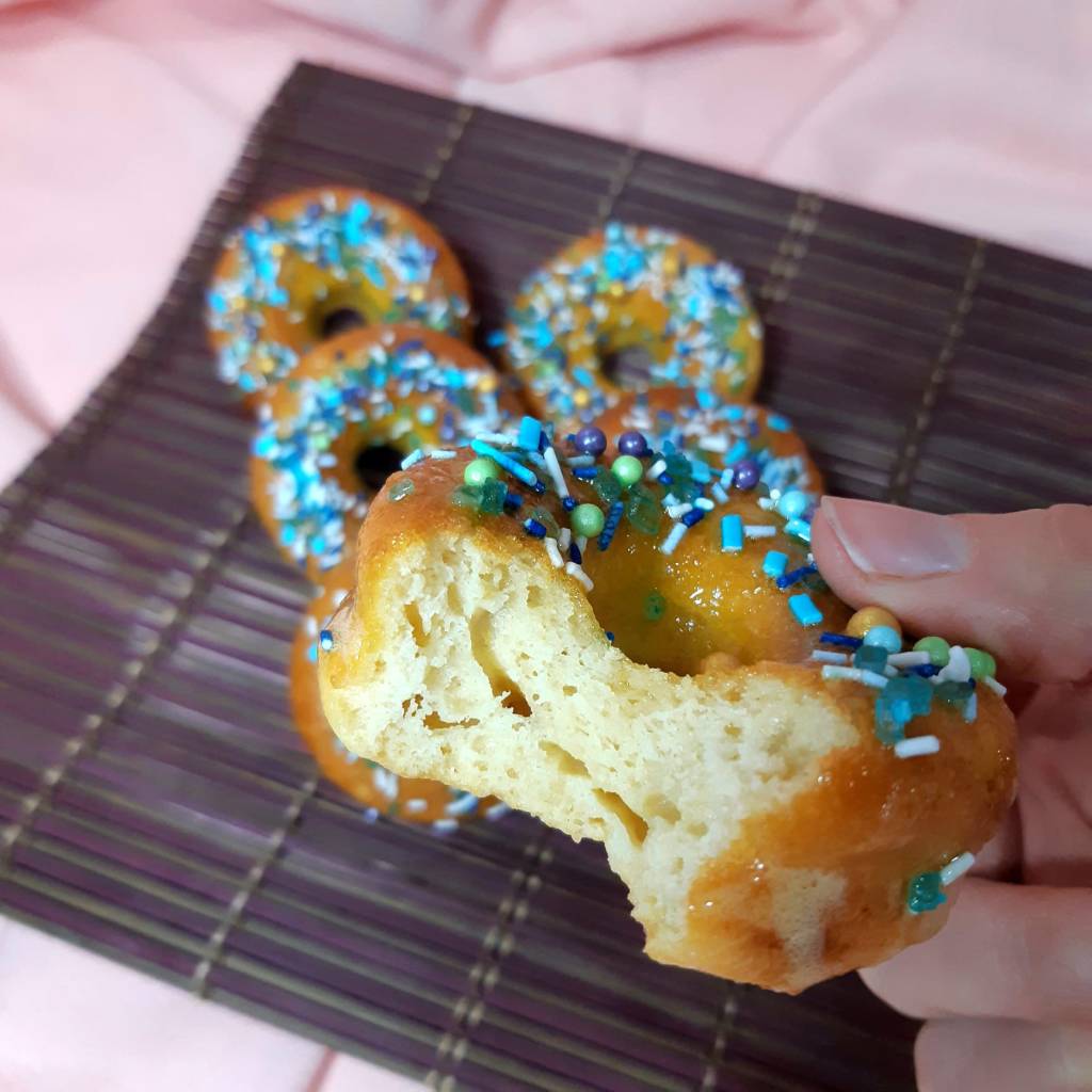 Probar y probar, en eso consiste la cocina. Después de probar varias recetas de donut al horno y no convencerme del todo la textura, termine probando una receta tradicional de bizcocho y amoldándola un poco.