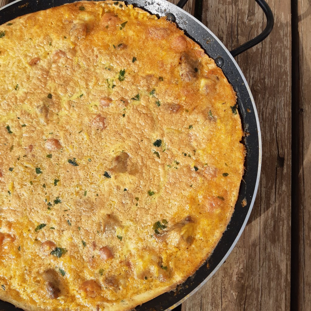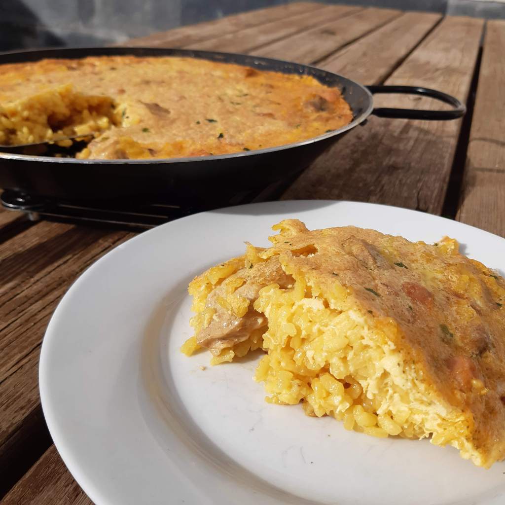 - Servimos de inmediato, este arroz no necesita reposar, la capa de huevo le sirve de tapa y con los minutos que esta en el horno se termina de cocer.