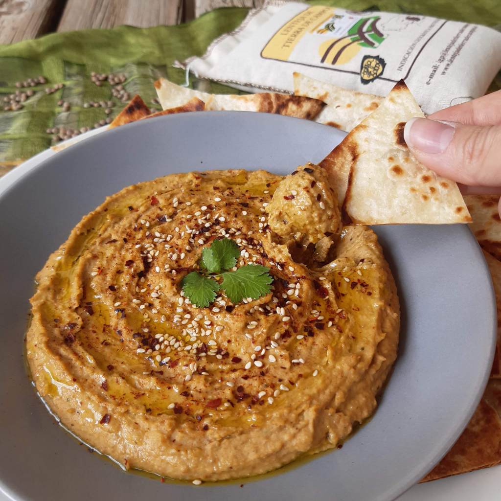 El humus es generalmente una pasta de garbanzos, típica de la cocina árabe, aderezada generalmente con aceite de oliva, zumo de limón, tahini y ajo.