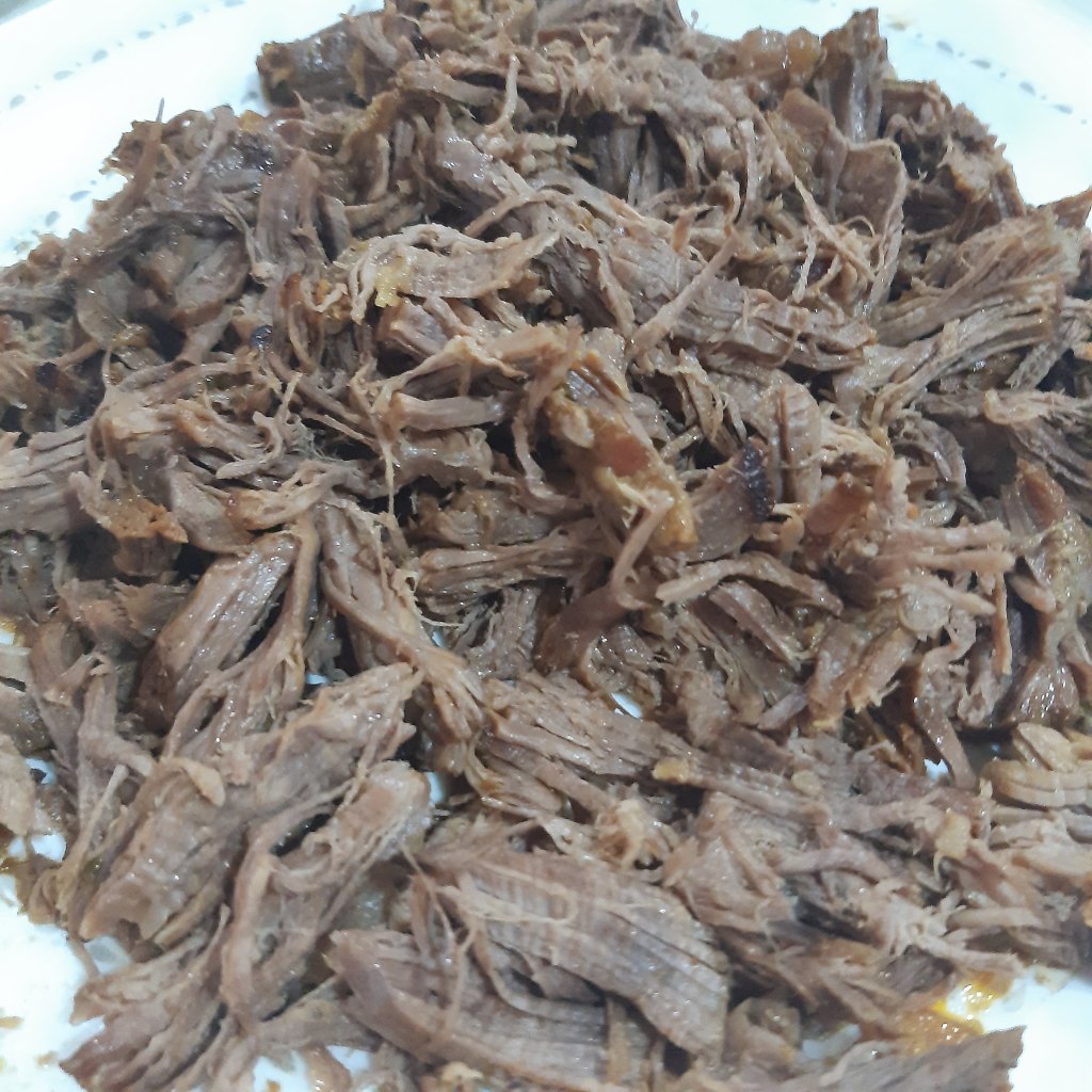 - Empieza a desmigar la carne ( ver foto ) para luego juntarla con la salsa ya triturada y poder rellenar los tacos.